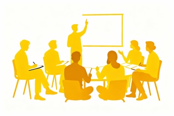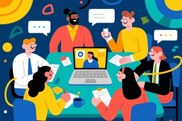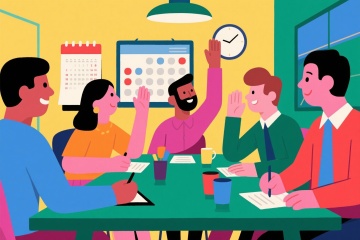 清新插画风,拟人化角色办公场景,简洁色彩展现轻松氛围。
