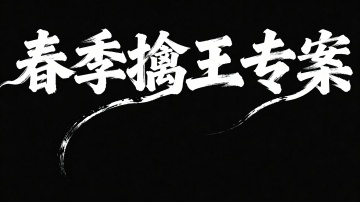 文艺手写字体“春季擒王专案”,毛笔手写风格,极强的艺术写作风格,视觉震撼,笔画带有水墨笔刷效果,笔画巧妙延长设计变形,黑底白字,高清画质,细节丰富,艺术感强烈 黑底白字 拍成一排