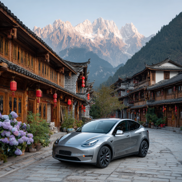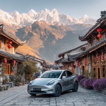 参考第一张图背景,画面主题是第二张图里的车,进行摄影级渲染,专业级融合,营造真实时尚质感