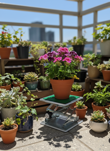 升降台位于一个透明的生态展示箱中央,台上是一个微缩景观(如苔藓小树),模拟阳光的光线从顶部射入,氛围宁静而富有生机 比例3:4