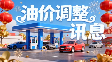 一幅有趣的3D插图,一个蓝色的加油站,有两台油机,汽车进站加油,整体采用卡通+3D拟物风格,色彩饱和度高,突出视觉吸引力;主题文案白色字体“油价调整 讯息”,采用潮流派对风格艺术字体,模拟真手写笔触,字体笔画粗厚醒目,形态夸张变形,部分笔画带俏皮弧度或独特弯折,营造活波、肆意、充满活力的派对氛围,。新年的氛围,活泼的氛围