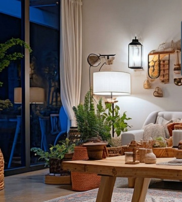 极简主义风格室内场景,以纯白色为主色调,搭配浅木色地板和家具,营造出明亮通透、宁静舒适的氛围。大尺寸白色L形布艺沙发,搭配多个白色和浅蓝色靠垫,沙发上随意搭着浅色针织毯。沙发前是一张浅色木质茶几,上面摆放着简约的白色陶瓷花瓶和蜡烛。房间一侧有一个木质置物架,上面陈列着白色陶瓷器皿和装饰画。落地窗边有大型绿色植物,白色纱帘轻柔垂落,让充足的自然光洒满整个空间。天花板上悬挂着白色球形吊灯,柔和的光影在墙面和地面形成自然的明暗过渡。整体构图采用开放式布局,线条简洁流畅,空间感十足,细节处体现出北欧简约设计的精髓。
