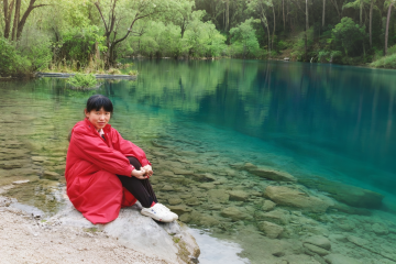 剪影风双色设计,海边女子静谧独立,波浪轻拍,黑白对比营造宁静氛围。
