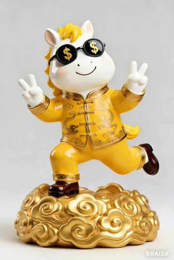 梦幻感与可爱感交融的3D风小马,鎏金线条勾勒出奢华质感,搭配彩虹祥云与喜庆红背景,尽显节日欢愉氛围。