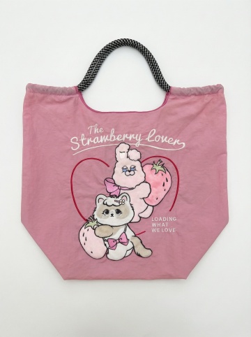 帮我把袋子变成草绿色,黑色手提带变成粉色,白色字母去掉