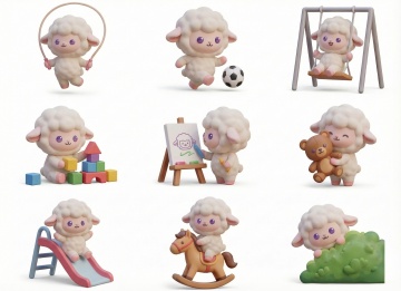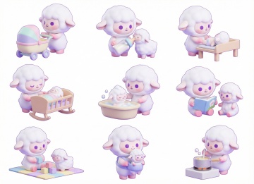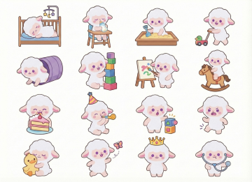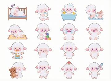 可爱感十足的卡通小羊表情包,拟人化表情丰富,扁平风格搭配描边设计,毛发生长细节生动,展现多种情绪状态,适合节日与日常趣味场景。