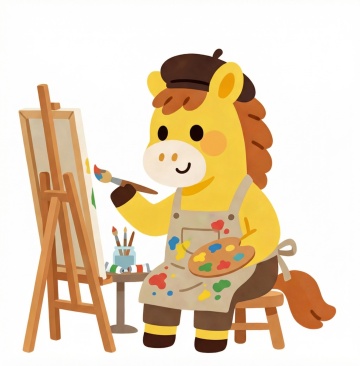 卡通感十足的独角兽踩着滑板疾驰,色彩喷溅的涂鸦风背景充满趣味与冲击力,波普艺术元素与拟人化设计交织,展现童趣与活力。