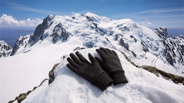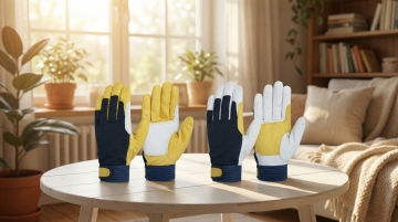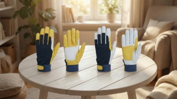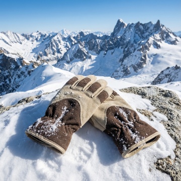 换个背景,保持手套不变,这四个手套放在沙漠的一张桌子上,蓝天白云