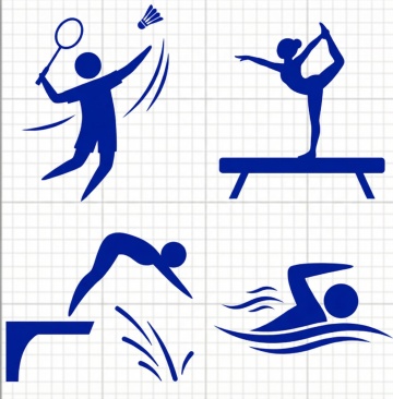 一套6张的系列素材集合,每张均为规整排布的单一元素图案,整体采用简约现代的扁平风格,纯色色块填充,无渐变,线条简洁流畅,边缘锐利清晰。第一张:人物在打羽毛球,后视图,黑发扎马尾,身穿白色短袖上衣配橙色袖口和橙色短裤,脚穿橙色条纹运动鞋与白色袜子,右手持橙色羽毛球拍高高举起,左手伸展,身体呈跳跃姿态;第二张:人物在踢足球,采用与打羽毛球人物相同的简约现代扁平风格、纯色色块填充方式、线条处理和配色逻辑,展现人物踢足球的典型动态姿态,服装延续运动风格;第三张:人物在游泳,保持系列统一的简约现代扁平风格,纯色色块,简洁线条,呈现标准游泳姿势,与整体造型风格一致;第四张:人物在跳绳,维持系列简约现代扁平风格,纯色色块填充,线条简洁,展现人物跳绳的动态瞬间,服装和造型符合整体运动主题;第五张:人物在冲浪,遵循系列统一的简约现代扁平风格,纯色色块,流畅线条,刻画人物在冲浪板上的平衡姿态,风格与前几张保持一致;第六张:人物在登山,保持整套系列的简约现代扁平风格,纯色色块填充,简洁锐利的线条,呈现人物登山的典型动作,整体造型、风格和处理方式与其他五张统一。所有素材均为纯色背景,无任何文字、logo和水印。