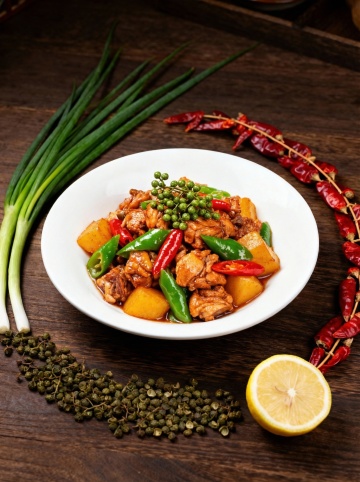 清新中式实景,豆腐配肉香,绿叶点缀,自然光下尽显家常美味。