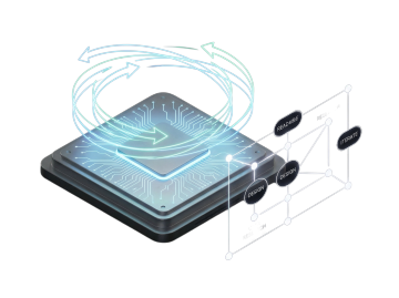 未来科技感十足的3D渲染插画,一个半透明蓝色渐变外壳的电池造型能量装置,内部有绿色分层液态物质和白色闪电符号,悬浮在白色圆形底座上方,底座边缘有蓝色和绿色的透明几何装饰,电池周围环绕着蓝色和绿色的半透明光环及球体,整体采用高光泽材质,光线从顶部斜射形成柔和高光与轻微阴影,纯色白色背景,科技感与未来感并存,设计简洁而富有视觉冲击力。