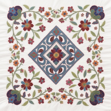 一组12个具有浓郁传统民族风格的圆形和方形刺绣纹样,采用蓝绿色、橙色和米白色为主色调,以黑色为纯色背景,纹样包含花卉、几何线条和卷曲装饰等元素,每个纹样均有独特的对称图案设计,整体以3行4列的规整网格排布,呈现出精致细腻的刺绣质感和复古华丽的视觉效果,适合作为传统服饰、家居装饰或文创产品的图案素材集合。