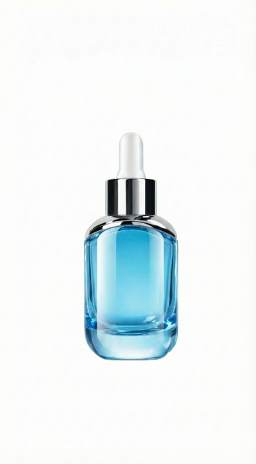 清新梦幻的玻璃瓶香水,搭配虚拟自然水波背景,营造浪漫氛围。
