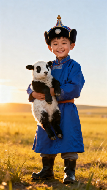 真实照片,辽阔的草原风光,画面中央偏后位置有一座白色的蒙古包,蒙古包周围散落着几只牛羊,前景是一大群正在低头吃草的羊和牛,毛色有白色和棕色,绿色的草原一望无际,远处是起伏的绿色丘陵,丘陵上有一棵孤零零的树,天空湛蓝,飘着几朵白色的云彩,阳光明媚,光线柔和,营造出宁静、自然、开阔的氛围,色彩鲜艳,细节清晰,具有强烈的空间感和层次感。