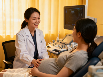 现代温馨家庭场景,一位25岁的孕妇坐在客厅地毯上看书,身穿米色长袖,双手拿着展开的书籍近距离看,眼睛视线对齐书籍,亚洲女性。旁边儿童在地上玩耍,大落地窗连接城市远景。屋内光线柔和,空气中弥漫着淡淡的蜜糖水甜味,营造出宁静、温馨、充满爱意的氛围