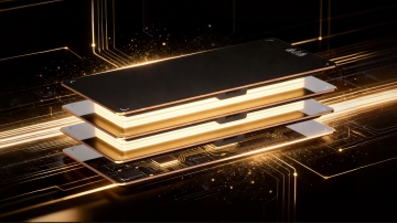 未来科技感十足的3D渲染插画,一个半透明蓝色渐变外壳的电池造型能量装置,内部有绿色分层液态物质和白色闪电符号,悬浮在白色圆形底座上方,底座边缘有蓝色和绿色的透明几何装饰,电池周围环绕着蓝色和绿色的半透明光环及球体,整体采用高光泽材质,光线从顶部斜射形成柔和高光与轻微阴影,纯色白色背景,科技感与未来感并存,设计简洁而富有视觉冲击力。
