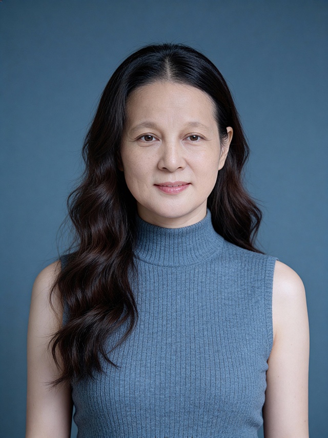 我想换成蓝色的西装,最好是现代化职业女性的感觉,参考韩式肖像照详情