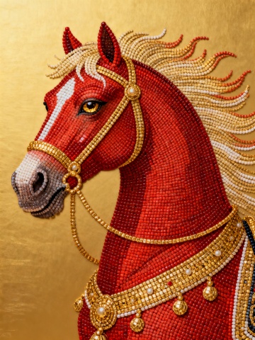 珠绣风格的金马