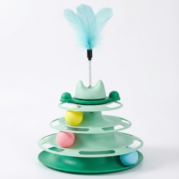 以图中的四层猫塔玩具为元素,设计4张跟四层猫塔玩具有关的广告图,物体主体特征不变,比例 「1:1」
