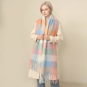 将围巾戴着美国女模特身上,模特穿大衣,围巾加长加宽