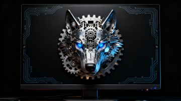 3D风拟人狼战士,毛发旺盛,手持巨斧,超现实主义风格,森林中散发神秘感。