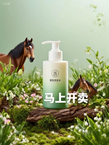 微缩艺术风融合虚拟自然,清新绿意中置入3D质感洗发水瓶与小马,水彩风花卉环绕,营造梦幻唯美、轻拟物的文艺氛围,传递清爽舒适之感。