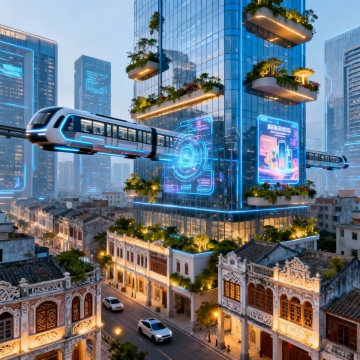赛博朋克风未来都市,霓虹光影交织,粒子流缠绕高楼,飞行器划破云雾,虚拟现实与科技感碰撞,冲击力十足。