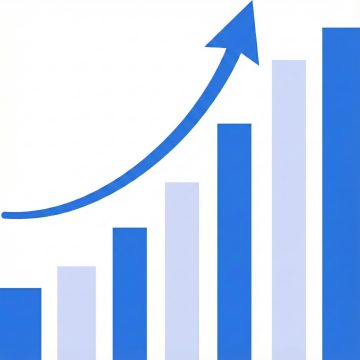 深蓝色渐变背景下,一只伸出的手掌,掌心向上,手指自然舒展,手掌上方悬浮着由蓝色光线构成的向上箭头和由蓝色与橙色光线交织而成的上升趋势曲线图,曲线图上点缀着发光的光点,整体画面呈现出科技感与未来感,光线明亮且具有层次感,营造出专业、进步、数据驱动的氛围,背景中隐约可见抽象的城市轮廓剪影,所有元素融合在一起,传达出数据增长与向上发展的主题。