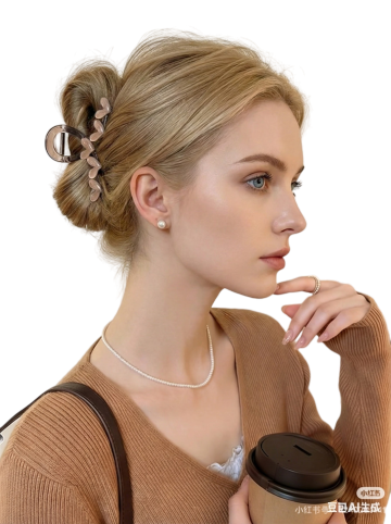 白色背景下,展示女性头部的发型特写,采用3D渲染技术,具有高度写实的质感,头发丝细节清晰可见,发丝顺滑有光泽,光影效果自然柔和,光源从上方照射,顶部头发有明显高光,底部发丝有细腻阴影。整体风格偏向产品展示图,注重头发的形态和材质表现,构图简洁,主体突出,仅保留头部两侧的耳朵部分,无其他多余元素。呈现一款时尚的棕色波浪卷发造型,发丝蓬松自然,卷曲弧度流畅,顶部头发饱满,两侧头发紧贴头皮向后梳理,形成优雅的半扎发设计,发尾自然垂落至耳后,展现出轻盈飘逸的质感。