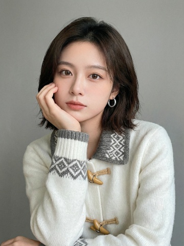 专业美发广告摄影,东方女性侧脸特写,光滑高颅顶的蓬松羊毛卷发型,深棕色染发,发丝呈现出健康的光泽感与细腻的层次感,发尾微微内扣,整体造型时尚优雅,背景为纯净的浅灰色,光线柔和均匀地洒在头发上,突出秀发的柔顺质感与立体轮廓,人物穿着简约的黑色抹胸,肩部线条优美,构图采用三分法,主体突出,视觉焦点集中在富有动感的发型上,画面干净整洁,信息传达直接高效,符合高端美发品牌的宣传调性。
