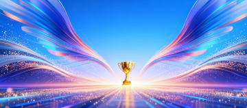 简约现代风格的纯色背景奖杯图案,单一元素规整排布,金色奖杯主体带有光滑圆润的双把手设计,杯身中央镶嵌白色五角星图标,奖杯底部为圆形底座,周围环绕半透明金色光环,点缀有小五角星和闪电形状的金色装饰元素,整体造型简洁明快,色彩纯净,符合系列素材的统一性要求。