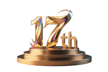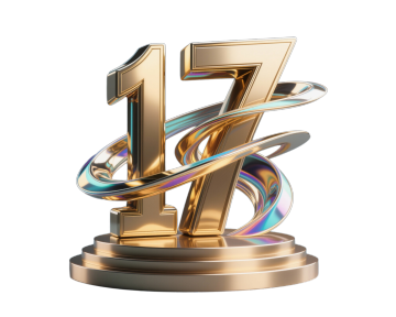 未来感与科技感交织的3D数字“17”,采用重拟物风与金属风设计,鎏金质感搭配炫彩光带,彰显奢华庆典氛围。