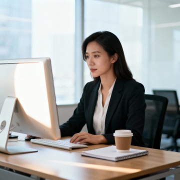 现代简约风格,商务人士办公场景,舒适实景感,体现高效与优雅。