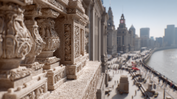 中景,外滩万国建筑博览群快剪:石材纹理、雕刻细节