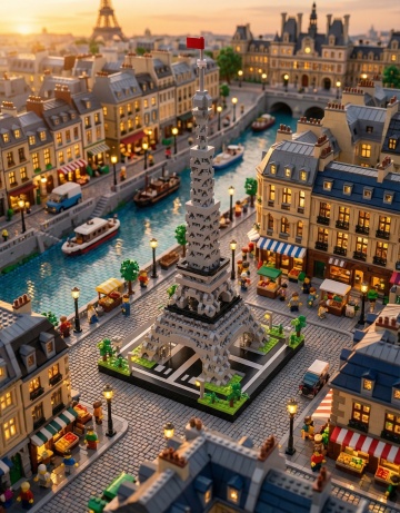 微缩艺术风融合中式建筑与未来都市,雪中刺绣质感的3D城市景观,梦幻科技感交织温馨节日氛围。