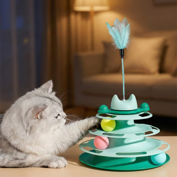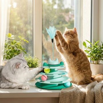 以图中的四层猫塔玩具为元素,设计4张跟四层猫塔玩具有关的广告图,物体主体特征不变,比例 「1:1」