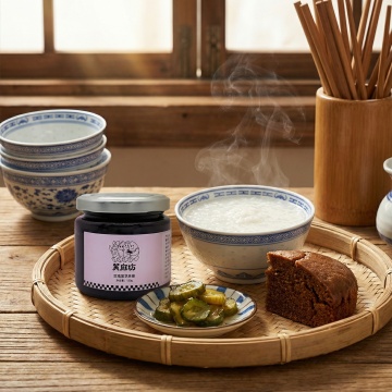 给这个玫瑰黑芝麻酱生成合适的场景不改变产品原样。