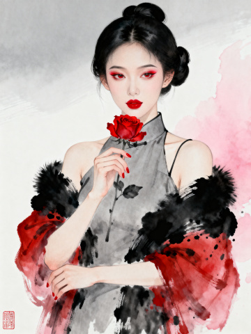 工笔风细腻描绘,水墨意境渲染,古典中式美人婉约清雅,发饰点翠如诗,衣袂轻柔,尽显文艺与唯美之韵。