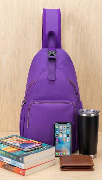 简约背包置于木质桌旁,阳光洒落,营造清新舒适氛围。
