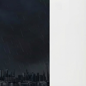 极简主义风格的黑白插画,画面中大量银色的雨滴从黑色的天空中垂直落下,雨滴大小不一,错落有致,下方是被雨水打湿的地面,地面上有不规则的水波纹和涟漪,整体画面简洁而富有韵律感,营造出一种宁静而神秘的氛围,雨滴和水波纹的线条流畅而细腻,黑白对比强烈,具有很强的视觉冲击力。