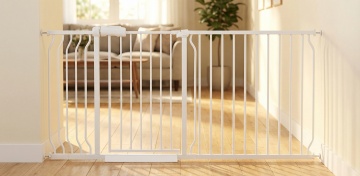 一扇白色的室内门,带有金色圆形门把手和银色铰链,门板上有一个矩形凹槽设计,门向右侧打开约45度角,门框为白色。门后不再是空白,而是通往一个充满生机的秘密花园场景:阳光透过茂密的树叶洒下斑驳光影,小径两旁盛开着五颜六色的花朵,远处有一座小巧的木质凉亭,空气中弥漫着清新的花香和泥土气息,整体画面明亮、通透,保持原有的高清晰度3D渲染质感和简洁干净的视觉风格。