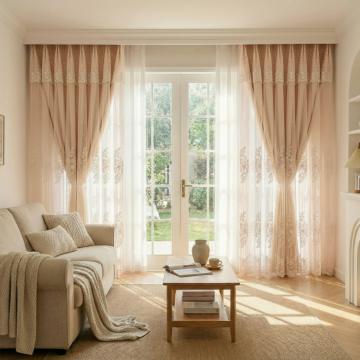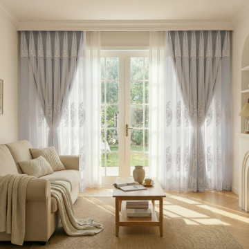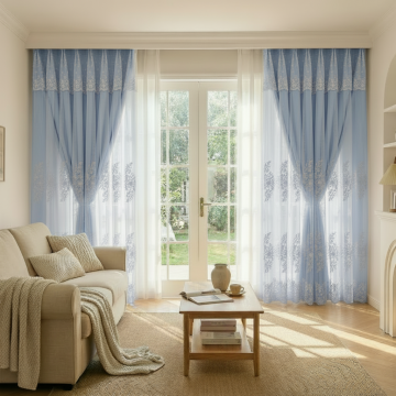 将窗帘的颜色变成淡蓝色,只改变里面的布帘的颜色,不要改变外面的一层纱帘其他的不要改变