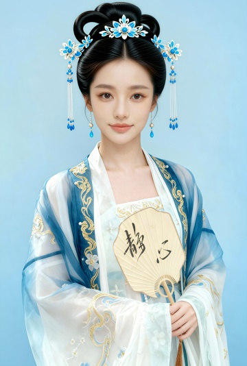 女生,汉服证件照,国风,纯色背景