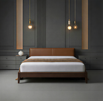 现代简约卧室,木雕风床头搭配柔和光影,性冷淡色调营造舒适温馨氛围,面料质感细腻,节日静谧感扑面而来。