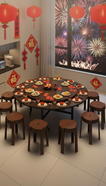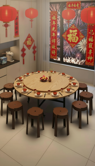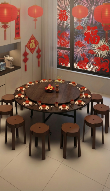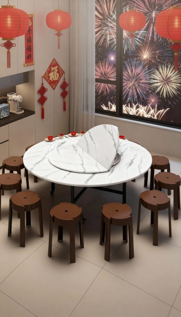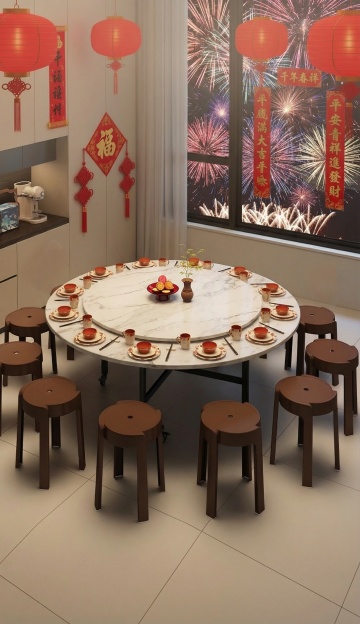 图1的圆桌面、转盘、椅子和桌架保持不变,图1的场景换成图2的场景