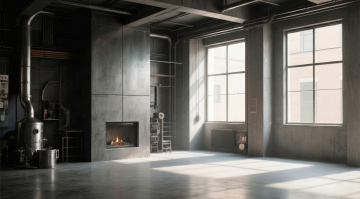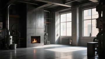 尺寸1200 × 800,要3:2,铸铁壁炉生产车间内的真实制造场景,多台已成型的铸铁壁炉或壁炉部件摆放在地上,呈现小批量、有序生产状态。 产品外观真实,有铸铁质感与自然使用痕迹,环境专业但不过度整洁。 画面重点突出稳定制造、产品一致性和日常生产氛围,而非宣传或摆拍。 整体风格写实、低饱和度,符合欧洲B2B制造商官网视觉。
