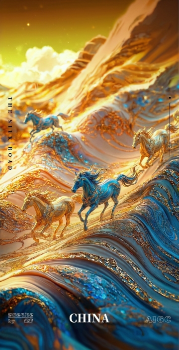 3D国潮风骏马踏金,鎏金浮雕纹饰,重拟物质感,中式奢华喜庆,2026新春贺岁设计。