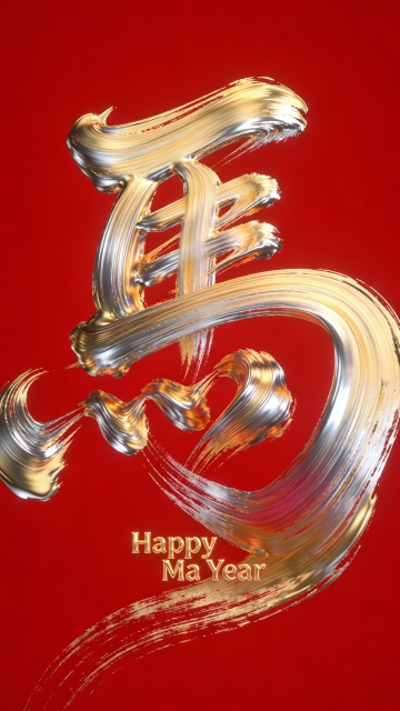 背景是红色搭配中式暗纹,主体是金色艺术感大字“马”,马的字体是毛笔字,飘逸潇洒,下方有金色艺术感小字“2026”