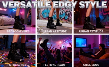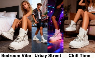 #你需要做什么:结合我提供的白底图及以下要求。生成这个产品专业的亚马逊的附图(附图要求6张) #你需要注意什么: 1.已专业视角借鉴参考亚马逊美国站中卖的比较好的Y2k风格的黑色鞋子的listing的主图和附图的构图 用于我们这次的图片生成。  2.如果附图涉及到模特图的话,要欧美模特上脚图, 3.每张图要有英文描述。 注意文字要专业的排版 字体要稍大别看不清 4.所有的图都要正方形尺寸, 满足亚马逊的1600*1600尺寸要求,每张图片清晰度要高,像素数保持在3840×2160以上 5.我的板鞋偏Y2k,休闲风 ,制作最适合它的穿搭场景 所以附图的设计要贴合产品风格 强调个性 自由 张扬  # 6.要有场景图,注意图其中包卧室穿,户外穿,音乐节穿,开 party穿,沙发看电视等场景发挥你的想象,然后把它拼成一张图,并且加上英文描述。 7.所有场景图要保留提供的白底图中产品主体(鞋子)的所有细节,场景图色调要明亮中要突出产品主体,不突兀#
