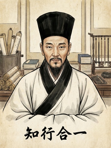 中式淡彩风格,水墨宣染,赭石、花青、杏色为主色调。一位着中式古典,样貌慈祥智慧的夫子,手指远方,对身边的书生谆谆教导;背景有的山水,朝阳,微微探出画面青松,竹子,一旁是弯弯小径,直通上天边。